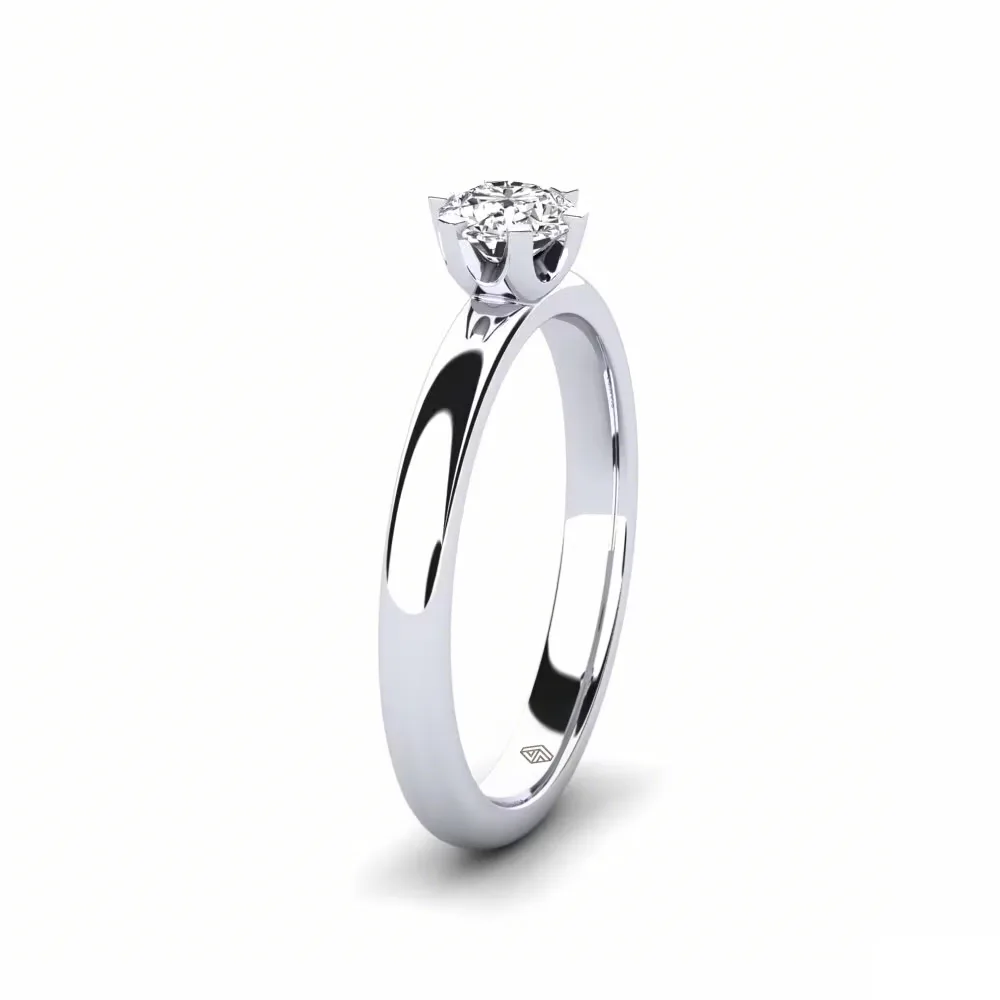 A design that never goes out of style. This solitaire ring features a classic 6-prong setting, lifting the diamond to capture maximum light. The thin band highlights the stone, making it an ideal minimalist engagement or anniversary ring.
