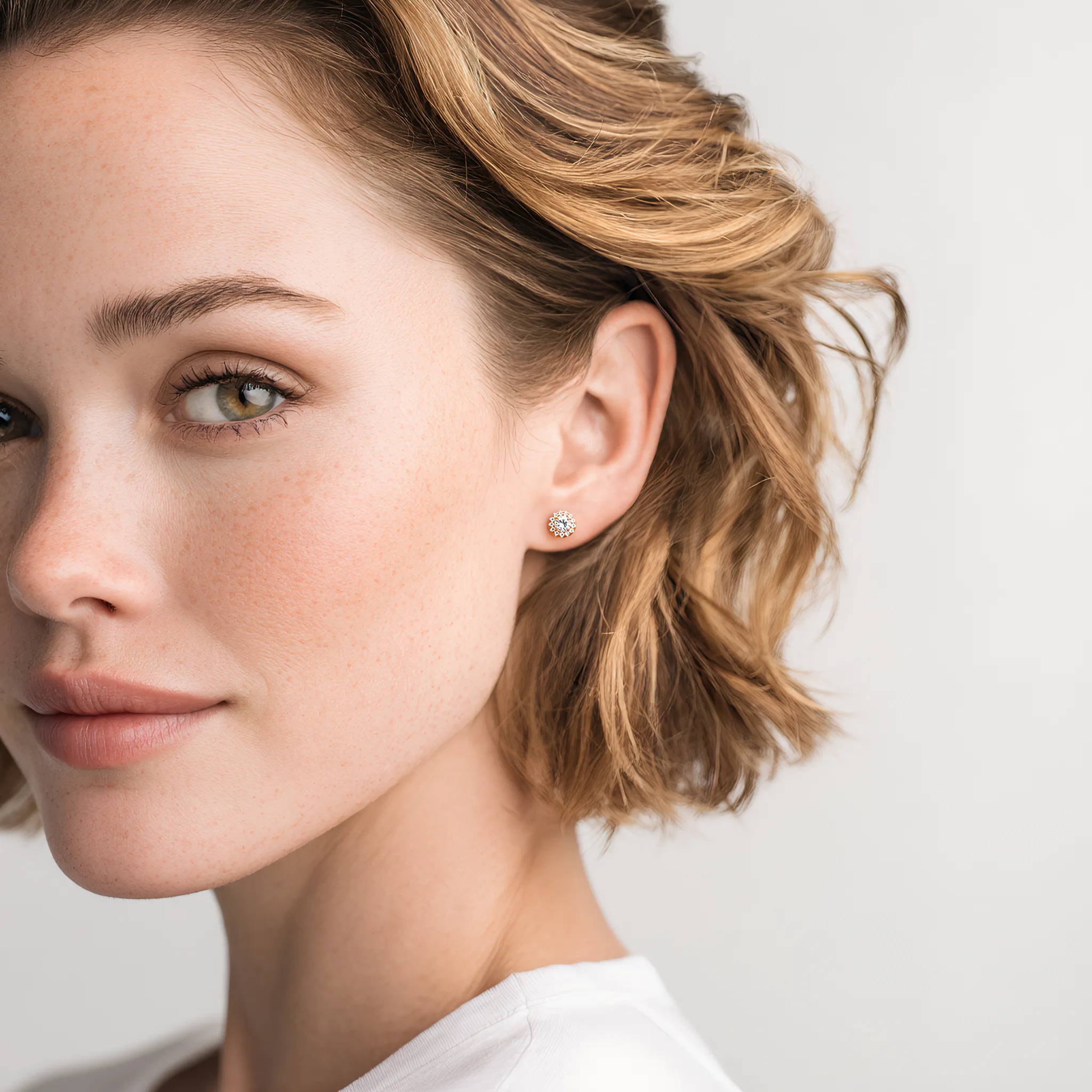 For those who believe elegance is an everyday affair. These diamond stud earrings feature brilliant stones enhanced by tiny accent diamonds. They are the perfect blend of subtle grandeur and everyday wearability for polished professionals.